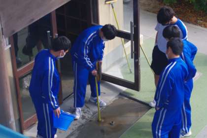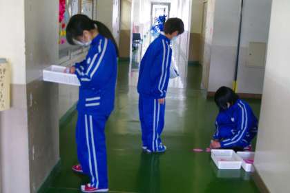 卒業式の準備や清掃をしてくれている1年生と2年生。