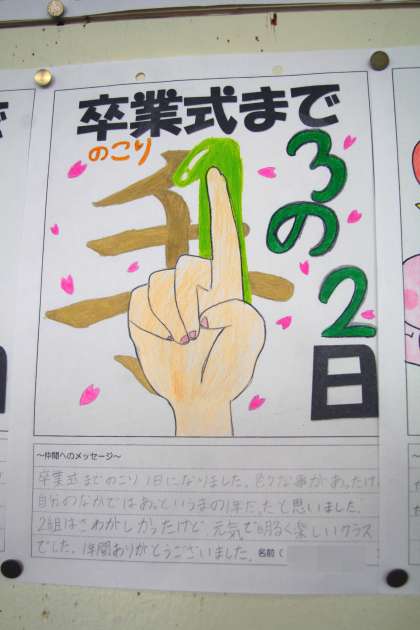 卒業式までのカウントダウンカレンダーは、今日ついに「あと1日」となりました。