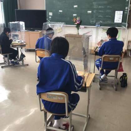 今日の給食は、その花瓶を前に置いて、綺麗な花を時々眺めながら、中華のメニューを美味しくいただきました。