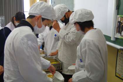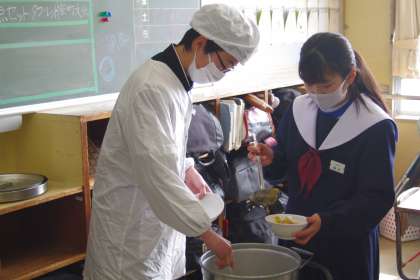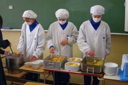 1年生の給食の配膳の様子です。