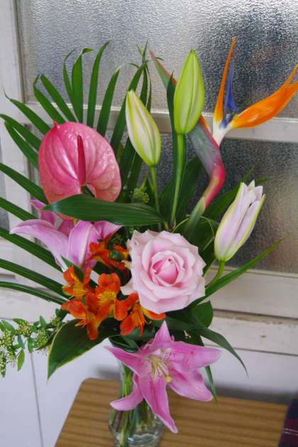 卒業式の会場(体育館)を飾っていたお花が、1年生2年生の教室に飾られていました。