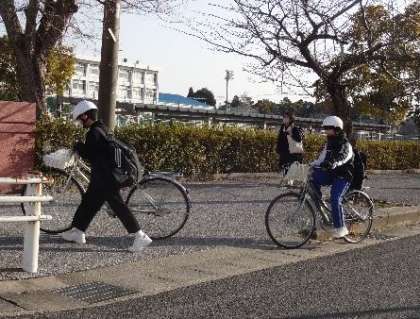 自転車の数も少なくなりました 〜今日の登校風景3〜