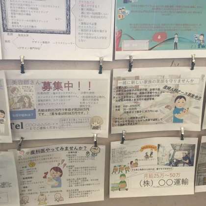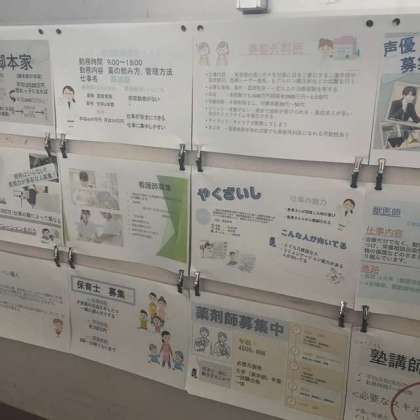 中学校の廊下に大量の求人広告が 【1年生 総合的な学習の時間】
