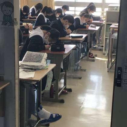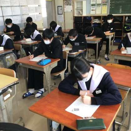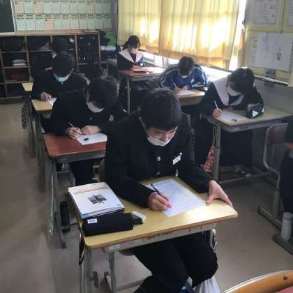 3年生が公立高校の入試に挑む今日、2年生の教室では、木曜日の社会科コンクールに向けて、最後の力を振り絞る生徒たちの姿がありました。