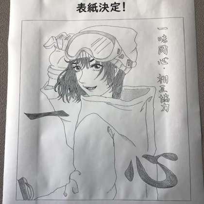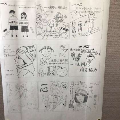 階段の踊り場に、しおりの表紙絵に応募された作品が掲示されていました。