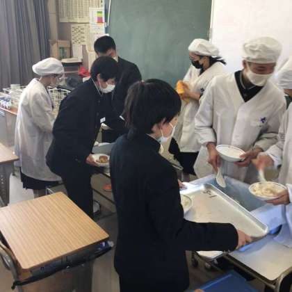 今日は1年生の配膳の様子です 【今日の給食 その3】