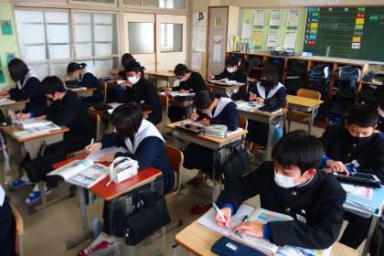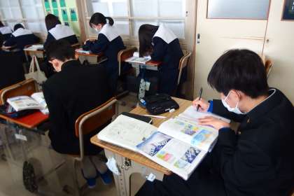2年生の授業の様子です。上の2枚が理科、下の写真が社会の授業です。