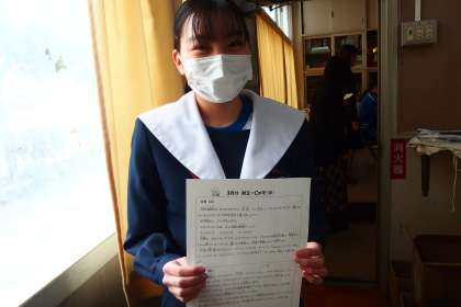 図書室からの連絡を伝えてくれた学校図書館司書さんと給食献立一口メモを紹介してくれた給食委員です。