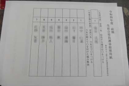 立会演説会はオンライでの開催としましたが、国政や地方自治体の選挙の投票は電子化されていないので、政治教育の観点から、投票方法は用紙に記入することにしています。
