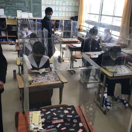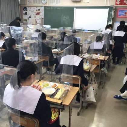 5つの学級の給食準備の様子を、ざっと回ってみました。