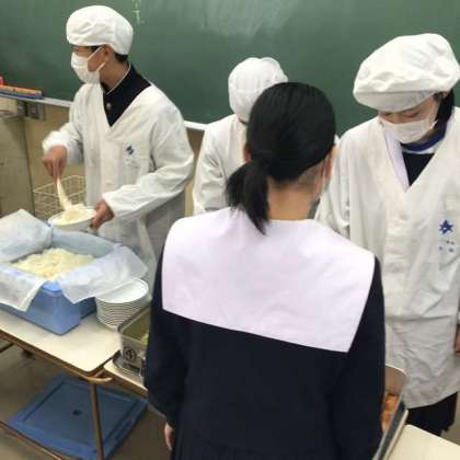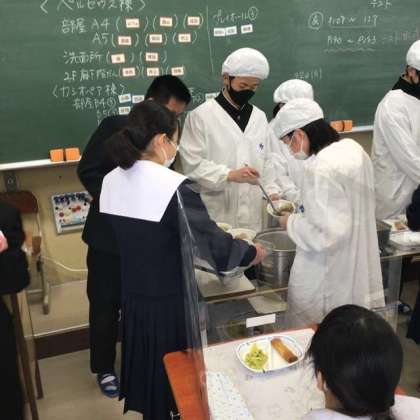 献立表を見ながら、食べられない給食のメニューを残念がる生徒がいました。