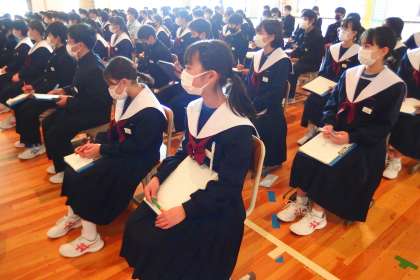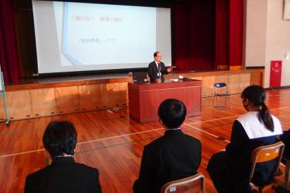 1年生のみなさんは、時折メモを取りながら、とても真剣に校長授業に耳を傾けていました。、