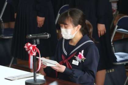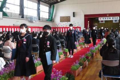 写真は、3月3日に行われた卒業証書授与式の様子です。