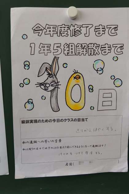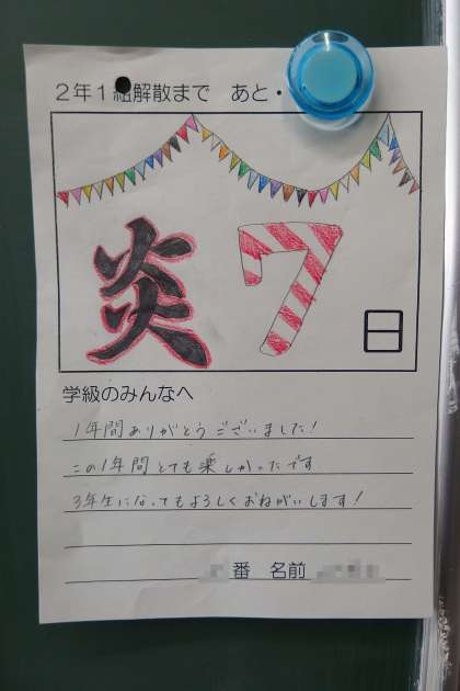 1年生、2年生の今年度の登校日数も、残りわずかとなってきました。