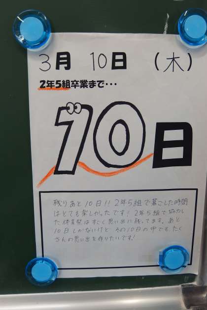 1年生、2年生の今年度の登校日数も、残りわずかとなってきました。