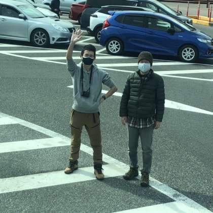 2年生以外の先生が車で付いて来てくれています。