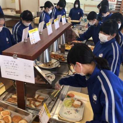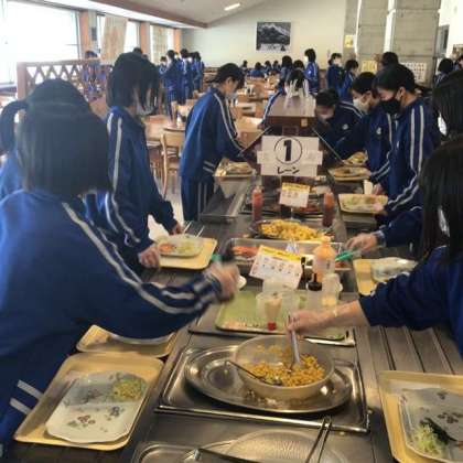 女子の朝食準備の様子です。