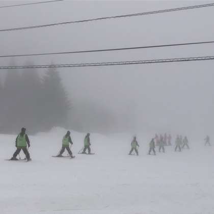 最後は、多くのグループが同じ斜面を降りてきたので、大渋滞になりました。
