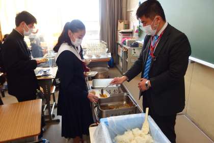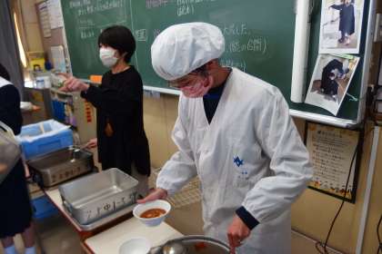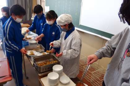 1年生の給食の配膳の様子です。