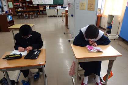 上中タイムに読書に勤しむ特別支援学級の1年生。