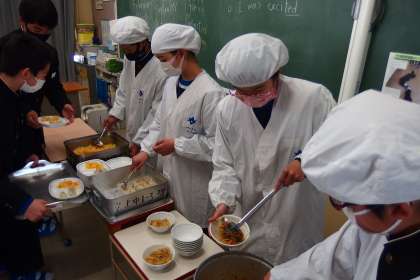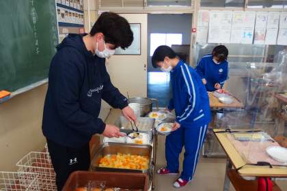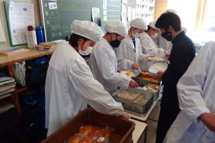 1年生の給食の配膳の様子です。