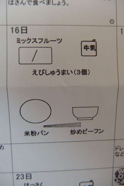 今日の給食のメニューです。