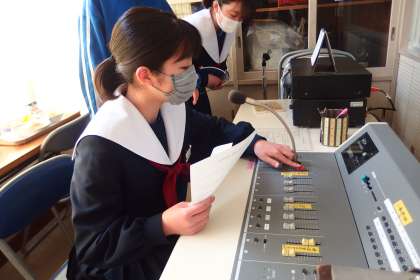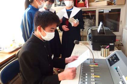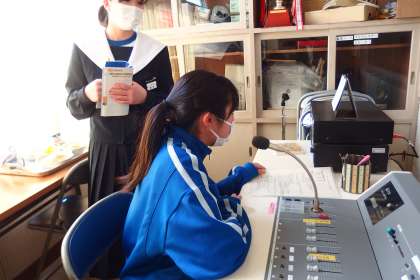 お昼の放送を担当してくれた放送委員と給食献立一口メモを紹介してくれた給食委員です。