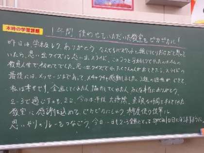 2枚目は、今日が最後の授業になるので、教科の先生に感謝の思いを伝えよう。