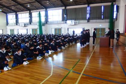 修了式に先立ち、令和4年度前期生徒会役員の認証式を行いました。