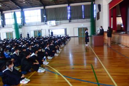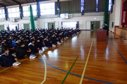 修了式では、上中賞の授与、修了認定と修了証の授与、学年代表生徒のスピーチを行いました。