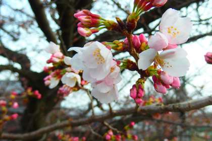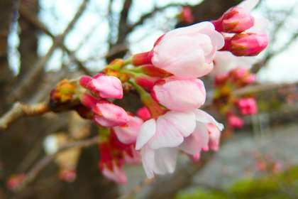昨日24日の写真では、まだつぼみでしたが、今日の日中の暖かさで、ちらほらと咲き始めました。