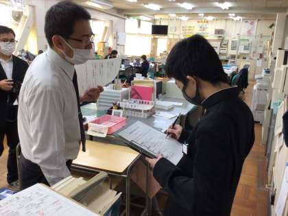 1・2学級は学校探検をしました。教頭先生にいろいろな質問をしていました。