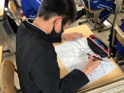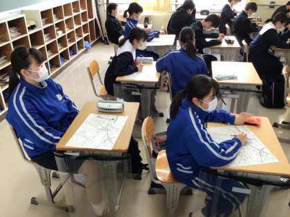 各通学団に分かれて、通学路や危ない場所の確認などをしました。