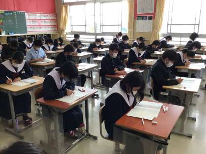 昨日の3年生と同じく1年生も2年生も学力テストを受けています。