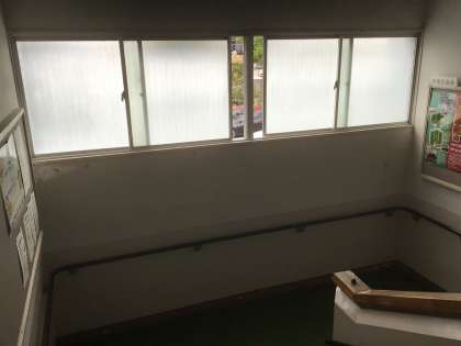 階段の踊り場の窓が換気のために少し開けられていました。