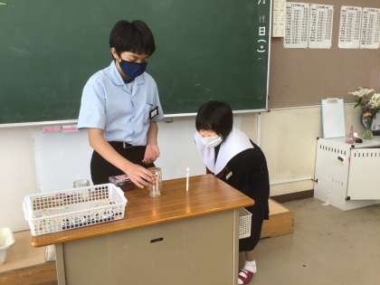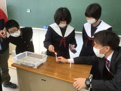 マッチでろうそくに火をつけるのですが、ちょっとおっかなびっくり。