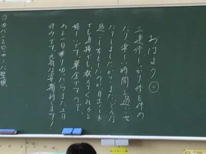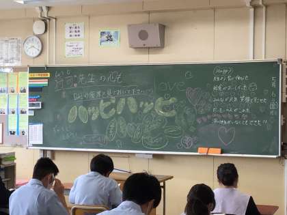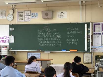 連休の合間ですが、概ね皆さん元気に登校できています。黒板にはなぜか、「華金」の文字が所々に…気持ちは私もよくわかります。今日1日頑張れば、また明日明後日とお休みです。連休の合間ですが、充実した1日を過ごしましょう。