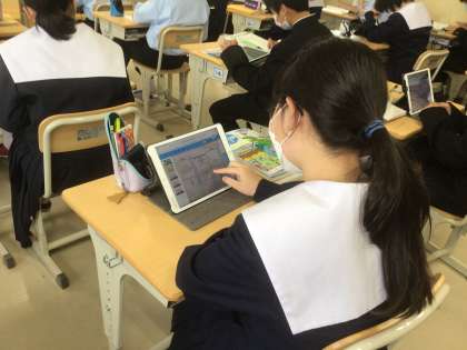 練習問題を解いたり、学習用タブレットを活用してグループワークをしたりしていました。