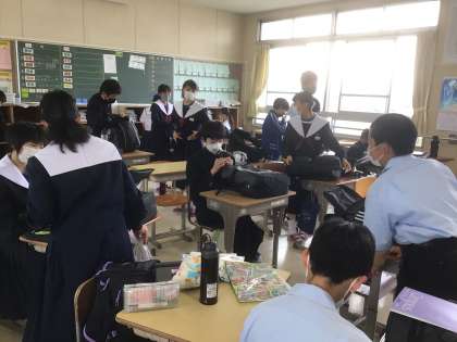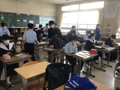 上中タイムが始まるまでに支度をしたり、友達と話したりして過ごしていました。
