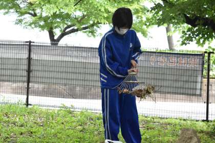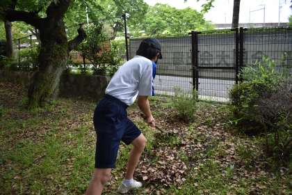 初めて使う清掃道具もありましたが、たくさんの落ち葉を集めたり、雑草を抜いたりしてくれました。