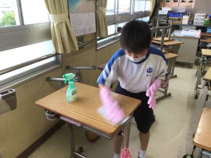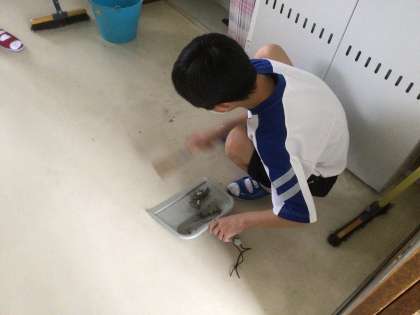 清掃の時間、1年生の様子を見に行きました。