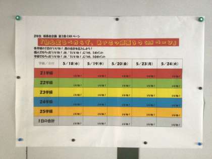 2年生の廊下にキャンペーンの集計用紙が掲示されていました。