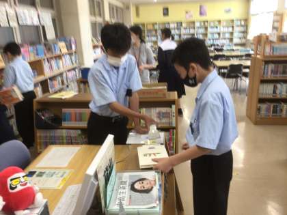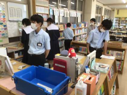 図書委員の生徒が、本の貸し出し業務をしていました。