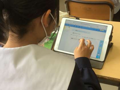 運動とエネルギーについて、調べたことをタブレットにまとめました。