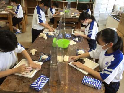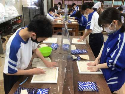 フレームに紙粘土を敷きつめるのは、見た目以上に大変そうでした。