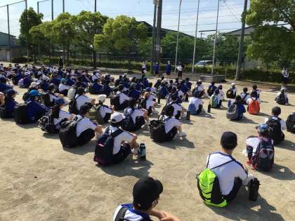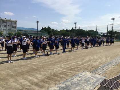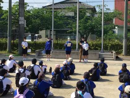 1年生の学年行事、STARTUP FESTIVALが始まりました。今日は暑さが心配されますが、天気は最高です。熱中症対策をして、HAPPY WALKに出発です。写真は出発式の様子です。みんなとても楽しそうです。知っているようで知らない上郷地区の良いところをたくさん探してきてください。