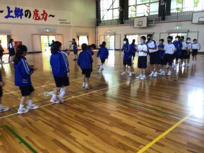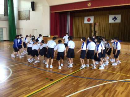明日の学年レクリエーションに向けて、8の字跳びの練習を行っています。疲れていると思いますが、手拍子でタイミングを取って回数を数えたり、輪になって気合を入れたりと元気に活動しています。現在の最高記録が242回ですが、明日はクラスのベストが尽くせるといいですね。