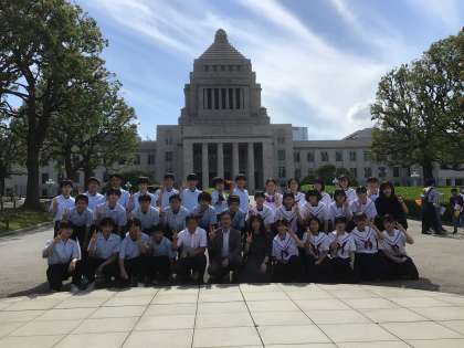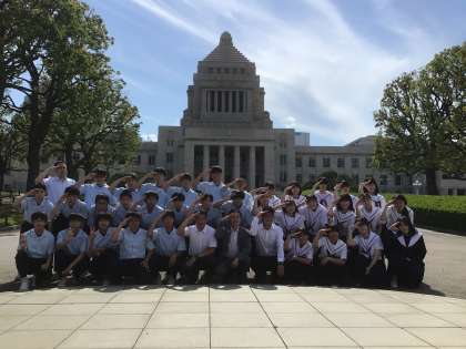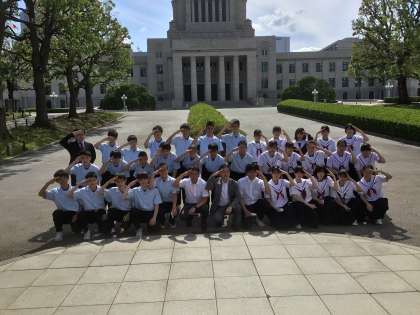 傍聴後、議事堂前で学級写真を撮りました。