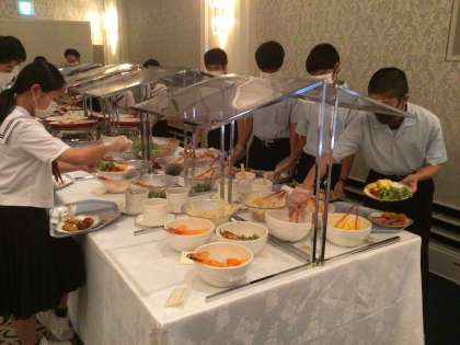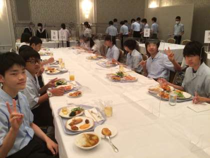 生徒たちは、ホテルの方にお礼を言って会場を出ていました。