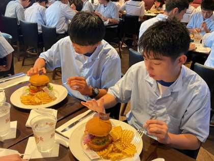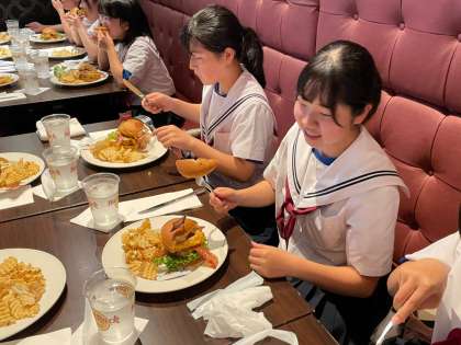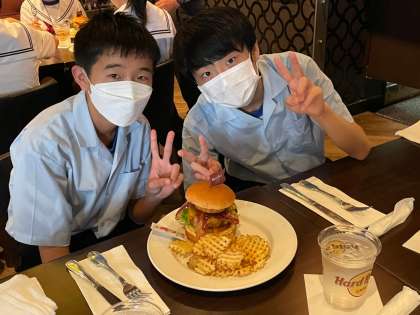 5組は、ハードロックカフェで昼食です。